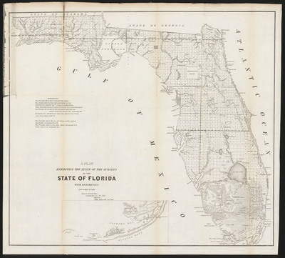 United States. Surveyor General. "A Plat exhibiting the state of the surveys in the State of Florida with references." Washington, D. C. : U.S. G.P.O., 1854? Allen Lastinger Center for Florida History. Thomas G. Carpenter Library, University of North Florida. UNF Digital Commons, https://digitalcommons.unf.edu/alcfh-maps/107