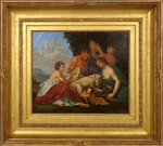 This painting by the Continental School features Pan, the ancient Greek god of rustic music, the wild, shepherds, flocks, and nature.