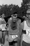 Negative (35mm, Black and white): Several runners participating in Oktoberfest 5K. Center: unidentified runner 219. Left: unidentified runner 271. Date: October 10, 1987