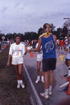 Positive film (35mm, color): Unidentified runners complete 5K. Runner 25 accepts card from race personnel. Part of a slide film strip. Date: October 10, 1987