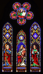 A triptych window stands behind the altar at St. Mary's Episcopal Church in Green Cove Springs, Florida. The three women represent Faith, holding a cross; Hope, holding a book; and Charity, nurturing a child.
