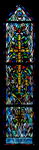 Tendrils weave around a cross in this window at Grace Episcopal Church in Orange Park, Florida, citing Jesus in John 15:5 as the vine, with believers as the branches.