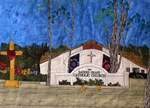 Quilted art rendering of Sacred Heart Catholic Church on Fleming Island, Florida.