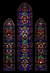 This triple lancet window at Grace Episcopal Church, Orange Park, represents the Trinity: symbols of God the Father at left, God the Son in the middle, God the Holy Spirit at the right.