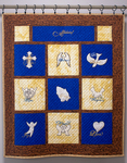 A quilt bearing doves, crosses, angel wings and praying hands is used as a wall hanging at First Presbyterian Church of Green Cove Springs, Florida. Quilting is a favorite craft in Clay County.