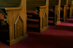 Lancet motif is repeated at the ends of the pews at First Presbyterian Church of Green Cove Springs, Florida.