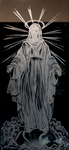 Frosted glass window honors Mary at Sacred Heart Catholic Church on Fleming Island, Florida.