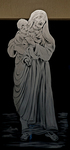 St. Teresa of Calcutta beams as she holds a child in this frosted glass window at Sacred Heart Catholic Church on Fleming Island, Florida.