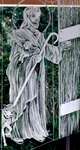Jesus knocks on the door of people's hearts, as in Revelation 3:20. The frosted glass window is at Sacred Heart Catholic Church on Fleming Island, Florida.