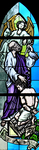 An angel prevents Abraham from sacrificing his son, Isaac, in this window at Trinity Community Church, Fleming Island, Florida.