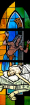 A dismayed pharaoh finds his firstborn son dead in this triptych window at Trinity Community Church, Fleming Island, Florida.