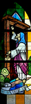 An Israelite dashes blood on his doorposts, in preparation for Passover, in this window at Trinity Community Church, Fleming Island, Florida.