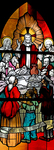 Jesus convenes a feast for the redeemed in this triptych window at Trinity Community Church, Fleming Island, Florida.