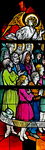 Jesus convenes a feast for the redeemed in this triptych window at Trinity Community Church, Fleming Island, Florida.