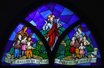 Jesus blesses the children of the world in this window at Trinity Community Church, Fleming Island, Florida.