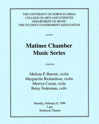 Melissa P. Barrett, violin; Marguerite Richardson, violin; Merryn Corsat, viola; Betsy Federman, cello.