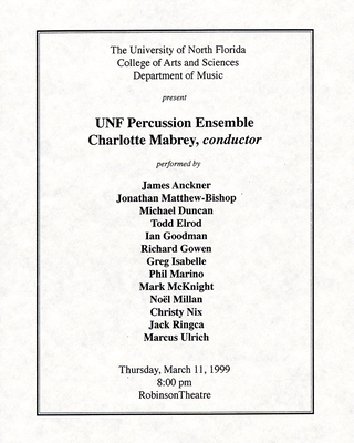 • UNF Percussion Ensemble November 16, 1999 by Charoltte Mabrey and University of North Florida Percussion Ensemble