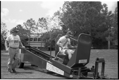 Roll of B+W Film scanned, Images of UNF Safety Week and the Seat Belt Convincer; Date: SEPT 1993