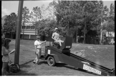 Roll of B+W Film scanned, Images of UNF Safety Week and the Seat Belt Convincer; Date: SEPT 1993