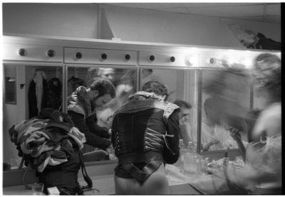 Roll of B+W Film scanned, Images of The Tempest play behind the scenes getting ready; Date: Feb 1994