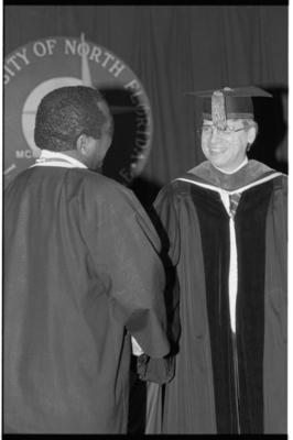 Roll of B+W Film scanned; Images of graduation ceremony with Former UNF President Dr. Adam Herbert and Former Florida Education Commissioner Betty Castor; Date: Undated